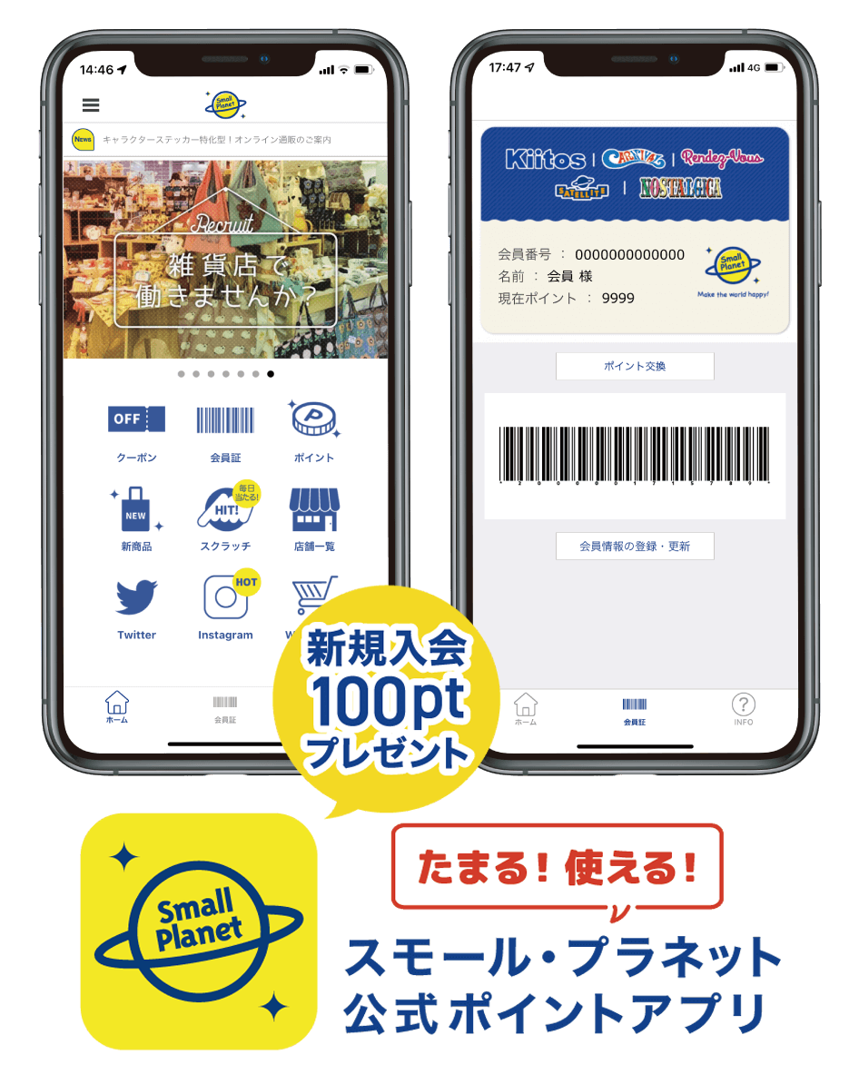 スモール・プラネット直営店の「Kiitos」「CARNIVAL」「Rendez-vous」「SATELLITE」「NOSTALGICA」でのみご利用いただけます。