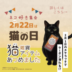 2月22日は猫の日各店で猫ちゃんのアイテムコーナーを展開して猫好きな皆さまのご来店をお待ちしております!さらに\今年はクーポンが当たる!/アプリ限定 "猫の日スクラッチ" もご用意こちらは2月1日お昼から24H限定となり […]